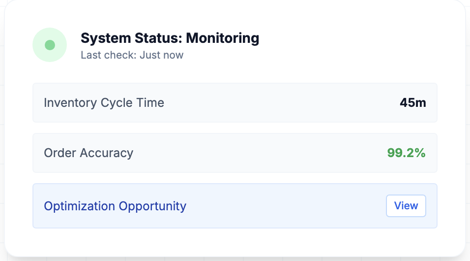 The AI Agent integrates with your existing systems to map with KPIs and continuously monitor and alert on opportunities for optimizing processes.